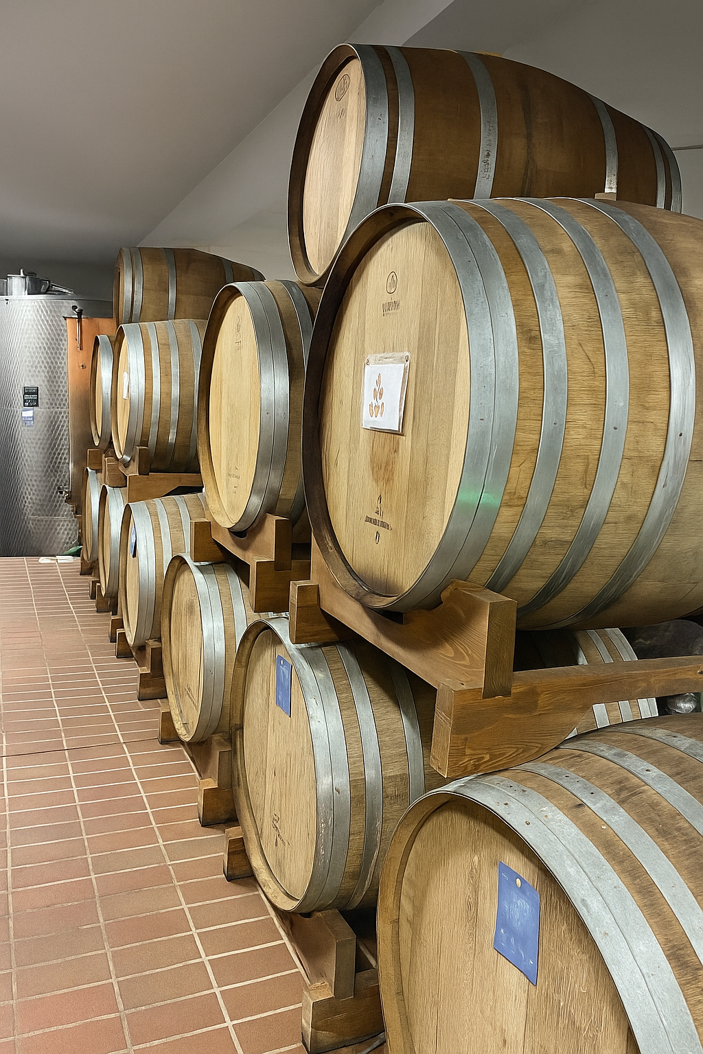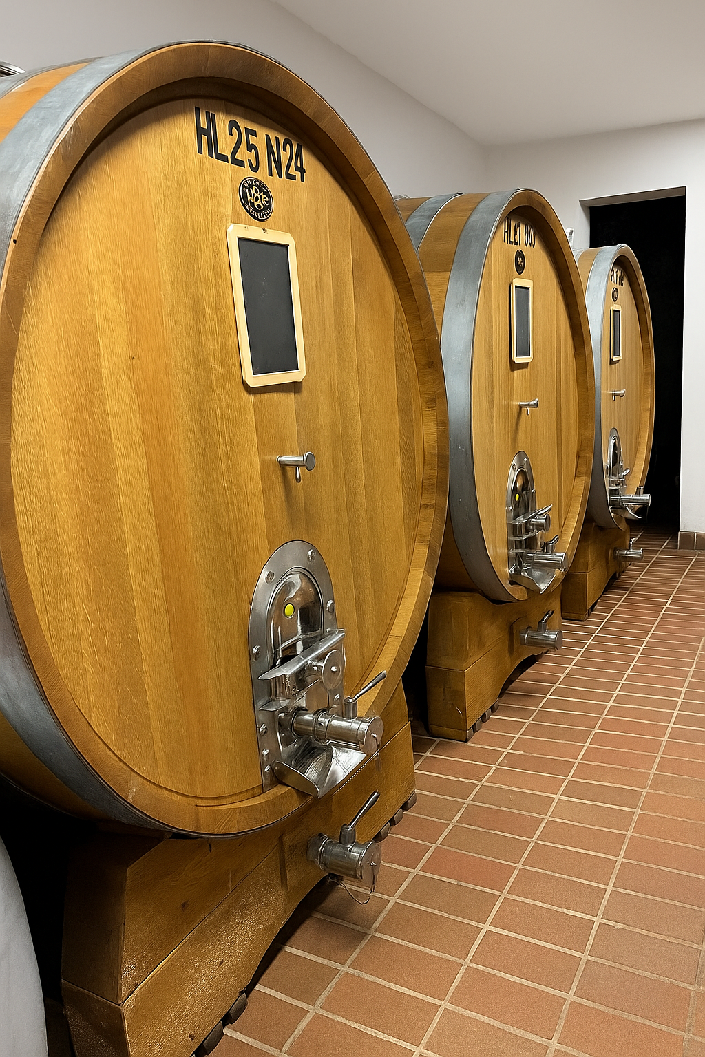 Depending on the wine, aging takes place in steel or wood, using large barrels or tonneaux. Once bottled, wines rest for 3–6 months before release.